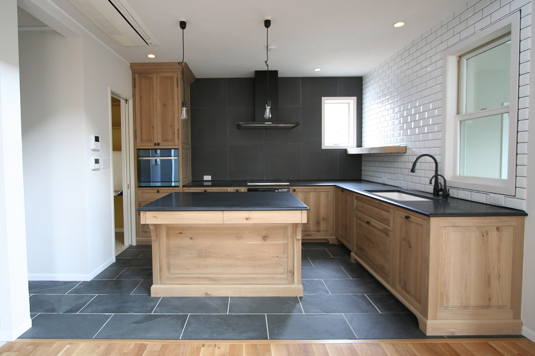 キャビネットに至るまでオーク無垢材を使用した、一生もののキッチンです。