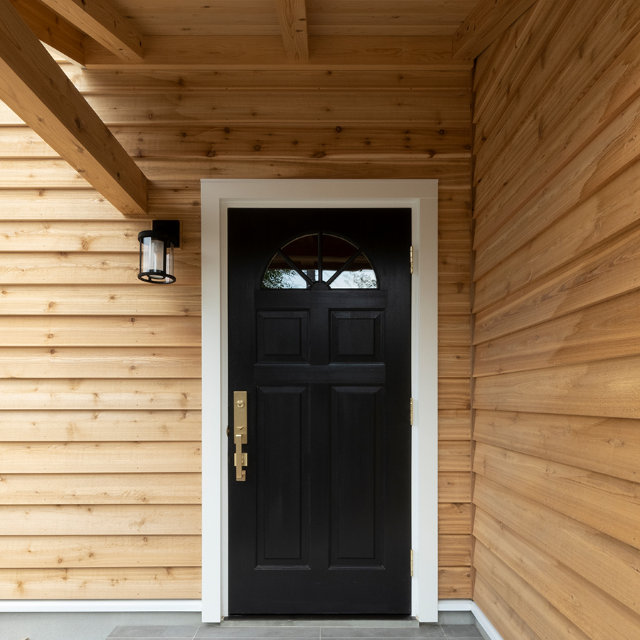 公園前という好立地をいかし、借景をうまく利用する為にスクリーンポーチを設けました。桜の季節にはポーチから満開のソメイヨシノを見ることができ、四季折々に変化する葉の表情や鳥の囀りに癒されます。